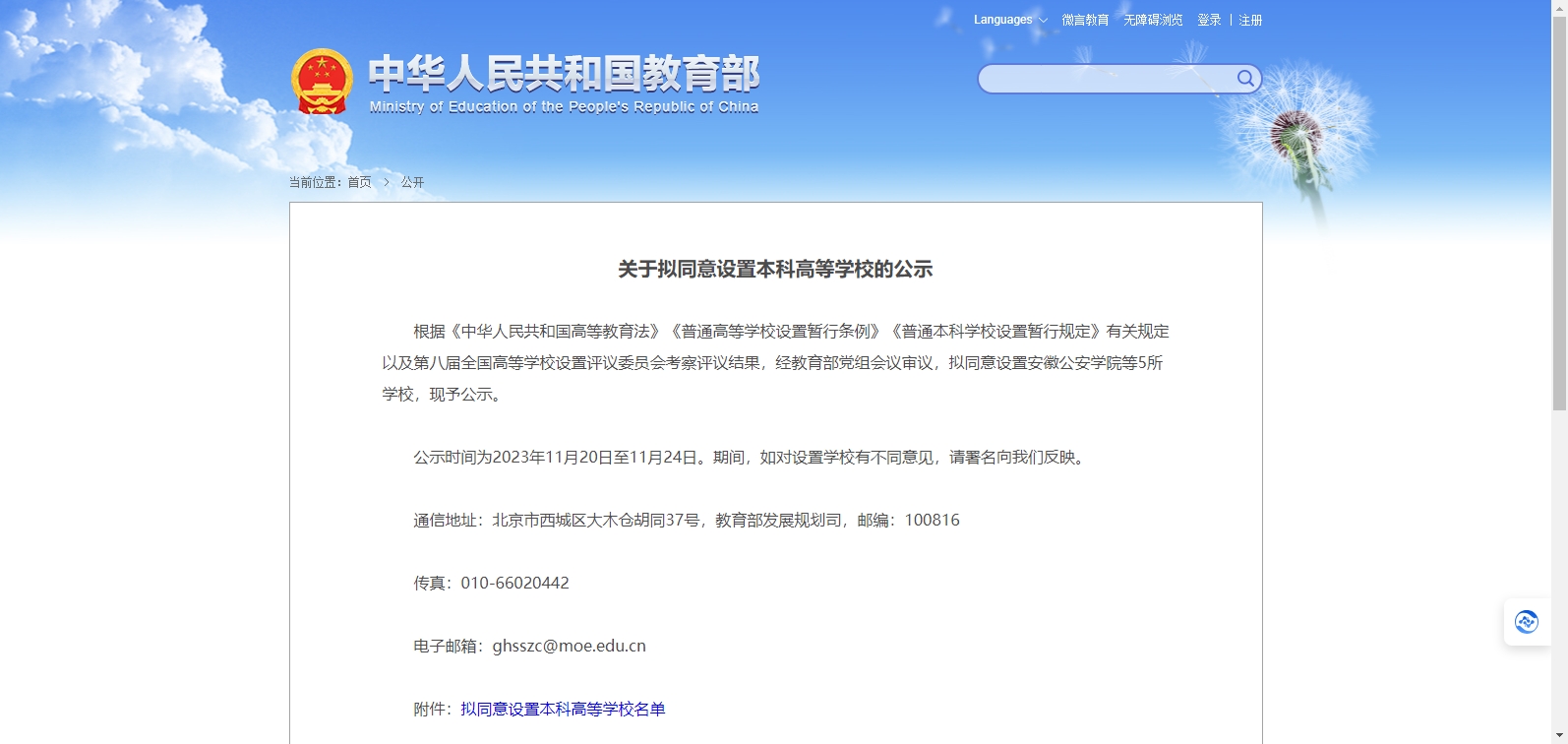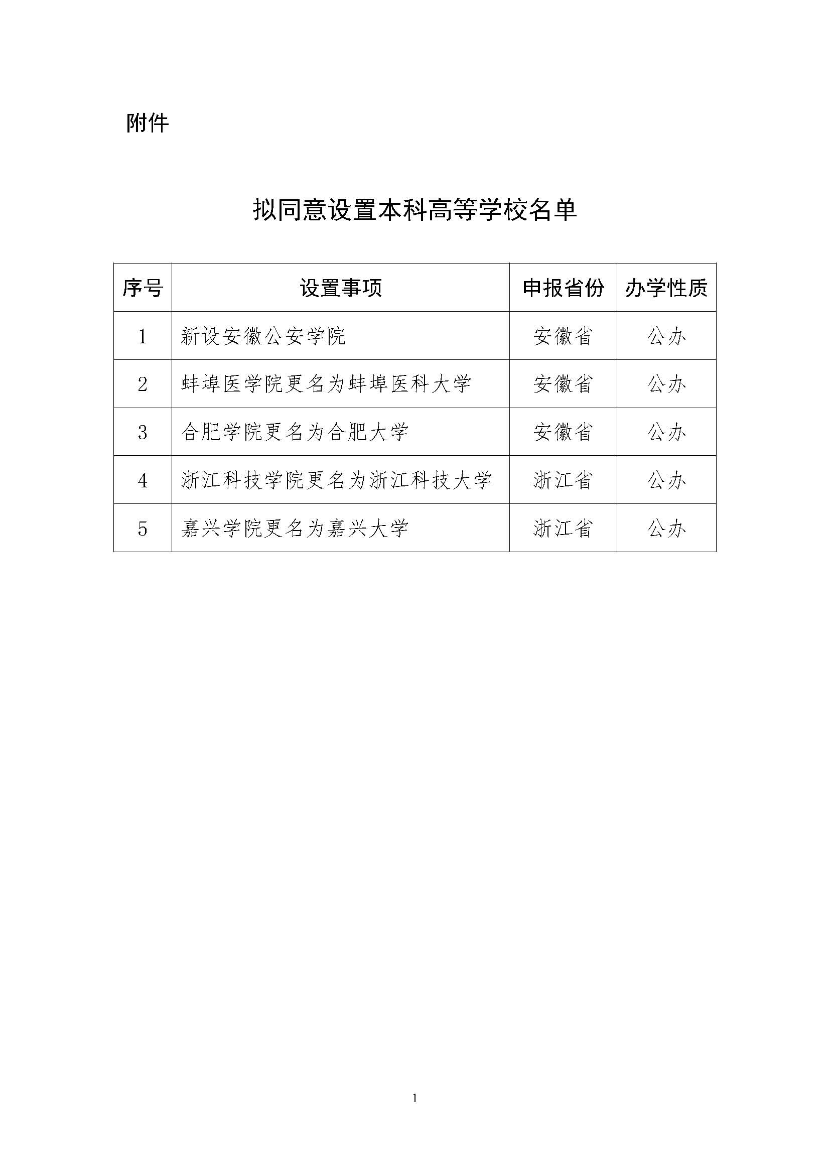 教育部發(fā)布《關(guān)于擬同意設(shè)置本科高等學(xué)校的公示》。公示指出,根據(jù)《中華人民共和國高等教育法》《普通高等學(xué)校設(shè)置暫行條例》《普通本科學(xué)校設(shè)置暫行規(guī)定》有關(guān)規(guī)定以及第八屆全國高等學(xué)校設(shè)置評議委員會考察評議結(jié)果,經(jīng)教育部黨組會議審議,擬同意設(shè)置安徽公安學(xué)院等5所學(xué)校,現(xiàn)予公示。公示時間為2023年11月20日至11月24日。
