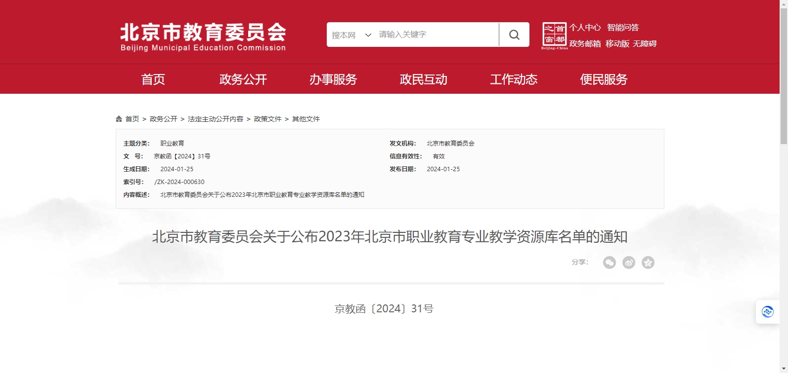 2023年北京市職業(yè)教育專業(yè)教學(xué)資源庫名單