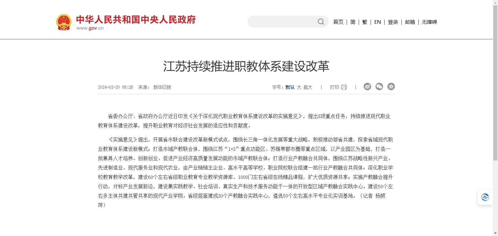 江蘇省省委辦公廳、省政府辦公廳近日印發(fā)《關于深化現(xiàn)代職業(yè)教育體系建設改革的實施意見》,提出8項重點任務,持續(xù)推進現(xiàn)代職業(yè)教育體系建設改革,提升職業(yè)教育對經(jīng)濟社會發(fā)展的適應性和貢獻度。