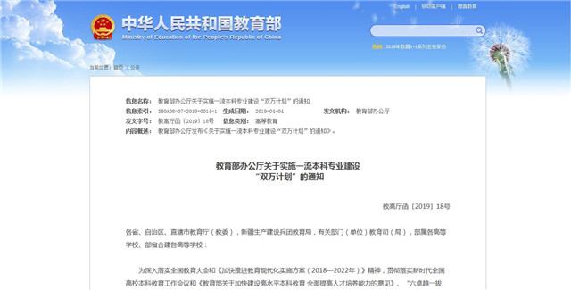 教育部:?jiǎn)?dòng)一流本科專(zhuān)業(yè)建設(shè)“雙萬(wàn)計(jì)劃”