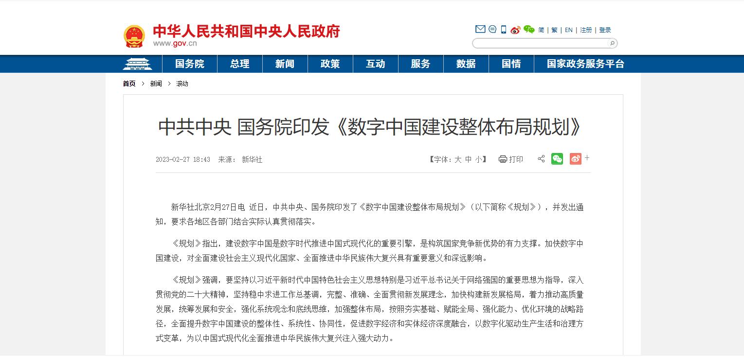 中共中央 國(guó)務(wù)院印發(fā)《數(shù)字中國(guó)建設(shè)整體布局規(guī)劃》