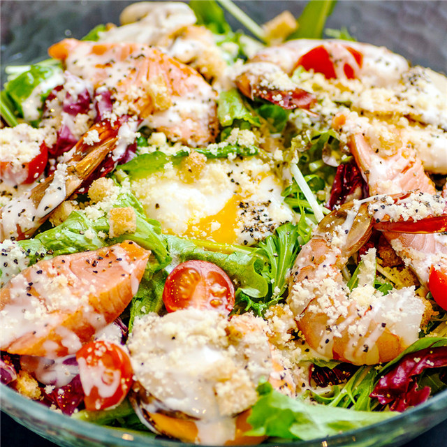 沙拉并不只是一堆冷冰冰的蔬菜,還可以包括各種高蛋白的肉類,以及面包丁、通心粉等主食。凱撒沙拉就是其中著名的一種,傳統(tǒng)風(fēng)味中除了蔬菜、肉類和奶酪外,還配有煎烤過(guò)的面包丁以提供飽腹感。 ......