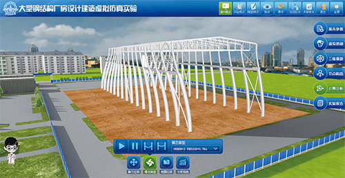 大型鋼結(jié)構(gòu)廠房設(shè)計建造仿真實驗通過讓學(xué)生像“搭積木”一樣自行設(shè)計建造廠房,并借助3D漫游技術(shù)從不同視角觀察結(jié)構(gòu),幫助學(xué)生理解復(fù)雜鋼結(jié)構(gòu)體系的構(gòu)成,培養(yǎng)學(xué)生探究精神;在此基礎(chǔ)上,還可借助后臺分析軟件對所建結(jié)構(gòu)進(jìn)行靜力、自振和地震響應(yīng)分析,綜合內(nèi)力、變形及用鋼量等分析結(jié)果,幫助學(xué)生對設(shè)計合理性做出評判并提出改進(jìn)措施,提升學(xué)生的知識綜合運用能力,形成學(xué)習(xí)反饋閉環(huán)。 |